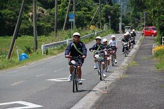 中学生は自転車で石波海岸へ行きました。