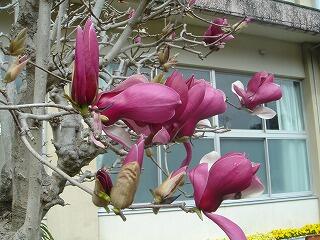 学校の花、モクレンが卒業を祝ってきれいな花を咲かせています。