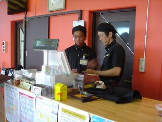 「道の駅なんごう」の方にご指導をうけながらレストランや売店で