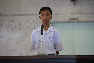 始業式では、1年 工藤一真君、2年 谷端天然君、