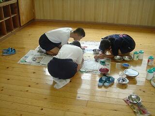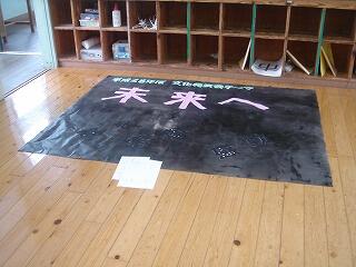 教室では、暑い中で、運動会の団旗や文化発表会スローガンの
