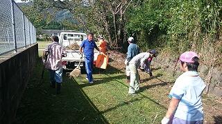 教職員、児童生徒全員で、三校の敷地内の刈った草の