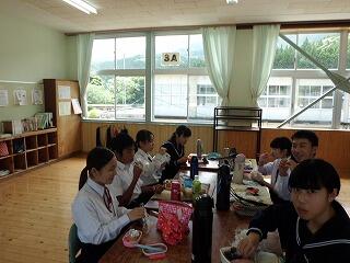 また、講演終了後は体育のバスケットボールの授業を本校の佐藤先生と一緒にしていただき、給食も生徒達と一緒に食べていただいて、子どもたちにとってとても楽しい一日になりました。