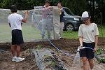 すべての苗を植えた後、動物の被害防止のため、畑の周りにネットをはりました。今回も保護者の方に協力していただき、作業を終えることができました。生徒全員でしっかりと管理をして、たくさん収穫できるようにしたいと思います。