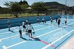 水泳の授業にむけ、全校生徒と職員でプール清掃を行いました。