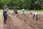 すべての苗を植えた後、動物の被害防止のため、畑の周りにネットをはりました。今回も保護者の方に協力していただき、作業を終えることができました。生徒全員でしっかりと管理をして、たくさん収穫できるようにしたいと思います。