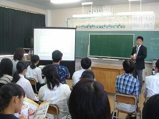 日南振徳高校、日南高校、福島高校、日南学園高校、日章学園高校の5校の先生方においでいただき、各高校の学科の特徴等について詳しく説明をしていただきました。