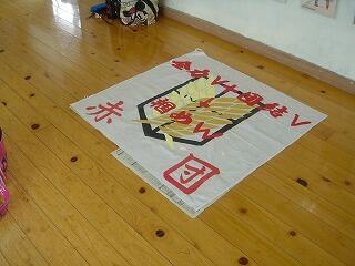教室では、暑い中で、運動会の団旗や文化発表会スローガンの