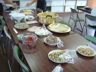 調理後は、全員で昼食会をしました。どれも大変おいしくできていました、特に、市木朝どれのオクラの肉巻き、特別メニューの牛ステーキが美味でした。市木中ならではの楽しい親子料理教室になりました。