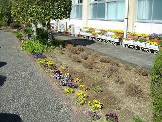 技術員の橋口さんに丹精こめて育てていただいているパンジーやノースポールがきれいに咲いて、生徒達を励ましてくれています。