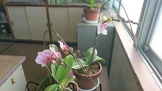今日は風がとても強い一日ですが、気温はわりと高めです。その陽気のおかげか、植え替えをして育てている胡蝶蘭が一輪花をつけました。先日から、つぼみはいくつもついてはいたのですが、ようやくその一つが開きました。ピンク色のかわいい花です。