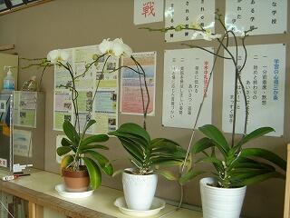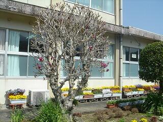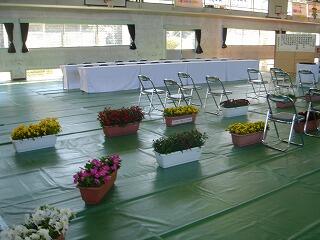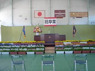 今日の午後は予行練習を行い、立派な式場もできあがりました。少ない人数のため、卒業生も含めた全校生徒、全職員で式場づくりを行いました。技術員の橋口さんが丹精こめて育ててくださったきれいな花々が、式場を飾ってくれています。