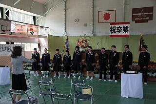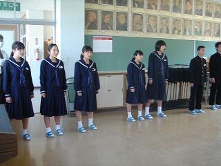 昼休み時間は、卒業式の歌の練習をしています。少ない人数ですが、きれいなハーモニーで、3年生の門出に花を添えるために頑張っています。