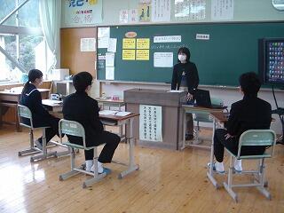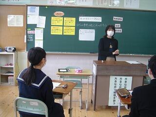 薬物を勧められたときの断り方のロールプレイング(役割演技)も交え、薬物依存についてのとてもわかりやすいお話でした。薬物から自分や周りの人たちを守る力を身に付けていくためのとても大切な学習になりました。