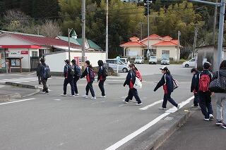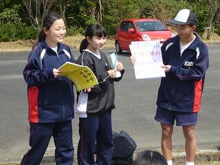 今日は、日中気温が上がって暖かい一日でした。6校時は全校体育で、ソフトボールの授業でした。二つのチームに分かれて、ボールを打ち、飛んだ位置を得点で表して勝敗を争うゲームをしていました。