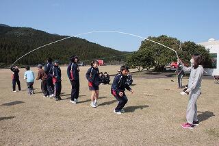 今日は3年生を送る送別遠足で、幸島を見下ろせるフィールドミュージアムに行きました。朝は少し肌寒かったですが、とても素晴らしい遠足日和で、生徒会役員が企画したクイズやゲーム、大縄飛び、ドッジボールなどをして楽しい一日を過ごすことができました。