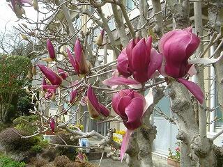 学校の花、モクレンが卒業を祝ってきれいな花を咲かせています。