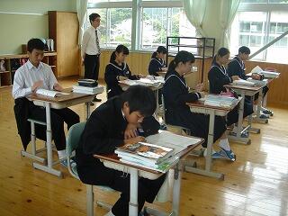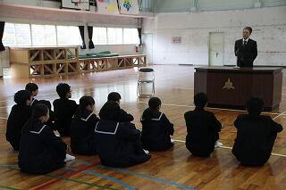 先生の話は英語担当の湯川先生の話でした。本校では、全校集会で輪番で先生方がいろいろな話をしています。自分の中学、高校の時の体験から一つのことをやり続けることの大切さについての話に、生徒達は真剣な表情で聞き入っていました。