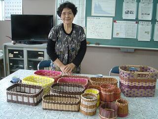 上石波の寺田アツ子様と下石波の仁田多千代様(本校の卒業生)から、明日入学する新入学生への入学祝いと在校生にも使って欲しいということで、手作りのペーパークラフトの小物入れをいただきました。