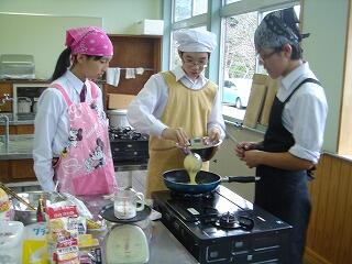 今日の5,6校時の3年生の家庭科は、子どものためのおやつ作りというテーマで、パンケーキ作りをしました。
