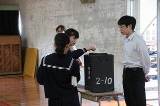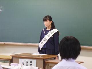 投票の結果、新生徒会長には2年生の東濵佳奈さんが選出されました。新しいリーダーを中心に生徒会が活発に活動して、よりよい市木中づくりに取り組んでくれることを期待しています。