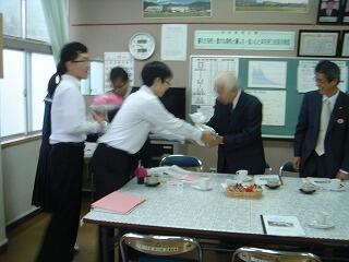 校長室に入られて、当時の校長先生の写真や50周年記念誌にある卒業写真を懐かしそうにご覧になられていました。また、生徒達のために使ってくださいとご寄付もいただきました。大切に使わせていただきます。ありがとございました。