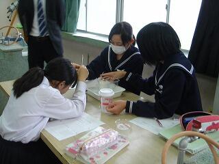 2年生理科の研究授業は、「冷たいコーラをコップに入れると、なぜコップの表面に水滴ができるか。」を考える授業でした。