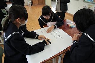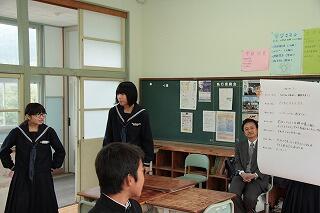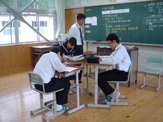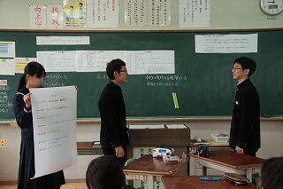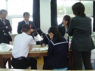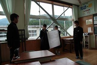 福島高校の先生を含め、7名の方々が授業を見られましたので、生徒達はかなり緊張気味でしたが、話合い活動や発表などに一生懸命に取り組んでいました。