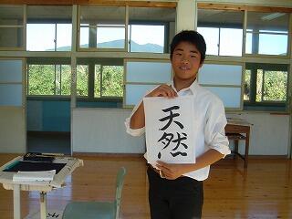 1年生の書写は、天然君が『天然』という文字を行書で書いていました。上手に書けていました。