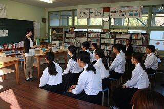 図書司書の川﨑先生にブックトーク(本の紹介など本についての話)