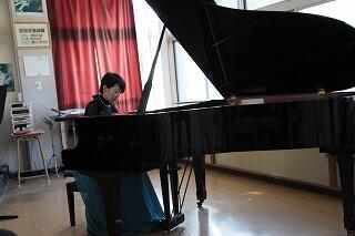 12月4日(金)、本城中学校、都井中学校、市木中学校の三校合同の鑑賞教室を本城中学校の音楽室で開催し、日向市出身のピアニスト、高場涼子さんのピアノ演奏を鑑賞しました。ショパンの「子犬のワルツ」や葉加瀬太郎氏の「情熱大陸」など、素晴らしい生のピアノ演奏を聴くことができました。