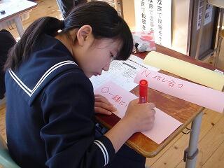 2年生の学級活動は、担任と養護教諭のTT(ティームティーチング)で性教育の授業でした。テーマは、『好きな人との交際の仕方について考えよう。』で、相手を尊重すること、DVの問題などについて学習しました。