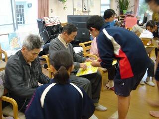 今日の午後は、市木ディサービスに全校生徒で訪問しました。自分たちで準備した福笑いやビンゴゲーム、じゃんけんゲームなどをして楽しく交流をした後、最後に、ハンドベルの演奏をしました。行く途中、強い雨と風で大変でしたが、高齢者の方々にとても喜んでいただきました。