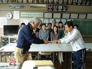 校長室に入られて、当時の校長先生の写真や50周年記念誌にある卒業写真を懐かしそうにご覧になられていました。また、生徒達のために使ってくださいとご寄付もいただきました。大切に使わせていただきます。ありがとございました。