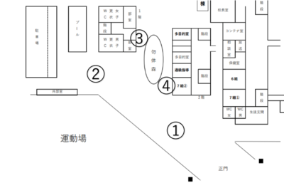 ③ 校外へ出る際には、勿体森に沿って右回りでお願いします。