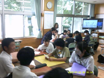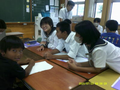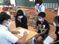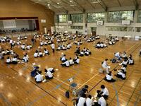 7月24日(水)に、本校の教育目標のはじめにある「ふるさとを愛し」の具現化のため、串間市小中高一貫教育の合同学習部会の中で『まなび場』を実施しました。本取組には、中学2年生94名、市内の小学6年生126名が参加し、小中学生それぞれが、自ら作成した自分の『人生グラフ』をもとに、説明したり質問を受けたりしました。自分の考えを言葉で伝えることによって、少しずつではありますが、考えが深まっているように感じました。また、小学6年生を温かい眼差しで見つめる中学2年生の姿をみて、大変微笑ましく感じたところでした。