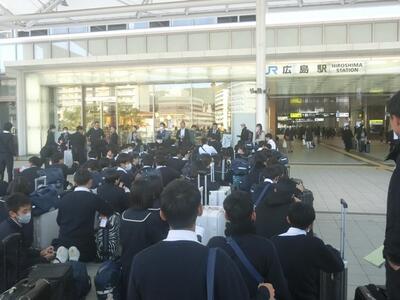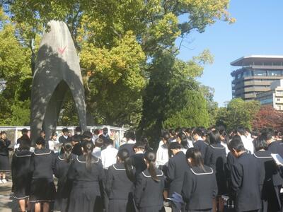 2年生は、本日より修学旅行に出発しました。広島の平和記念公園では平和集会を行い、祈りを捧げました。