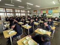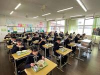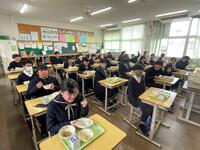 本日より給食が始まりました。無言で整列している給食当番の横を通ると、一人の生徒が「先生、頑張っていますよ」という合図なのか、腰のあたりでVサインを作ってくれました。その姿を見て、なんだか力が沸いてくるのを感じました。生徒を真ん中に、本年度のPTAスローガンである「ともに~家庭で育て、学校で伸ばし、地域で育てる」を実践していきたいと考えた時間でもありました‼