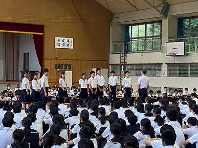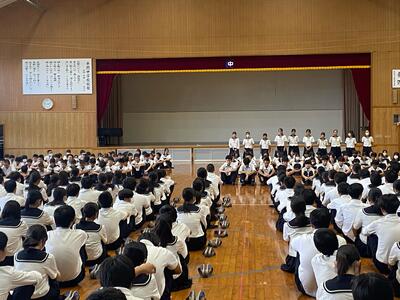 代表生徒からは、1学期の振り返り、各学年の状況を踏まえた反省と2学期への目標を堂々と発表してくれました。