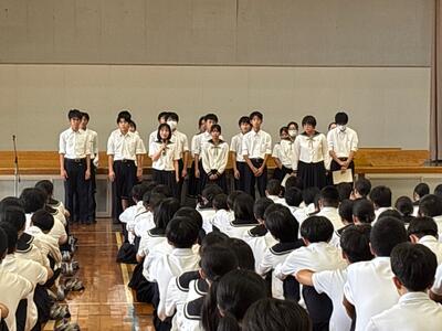 最後は、全員で「串間中の心」を歌って、志気を高めました。出場する選手のみなさん、特に3年生のみなさんは悔いのないように大会に臨んでください。応援しています!