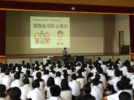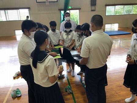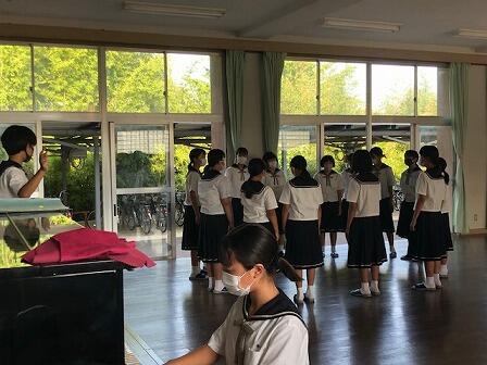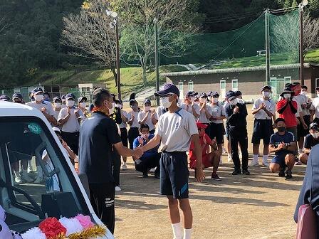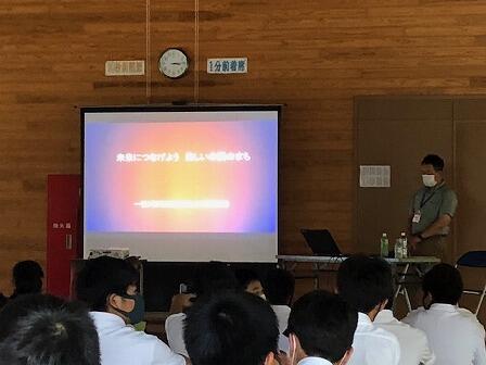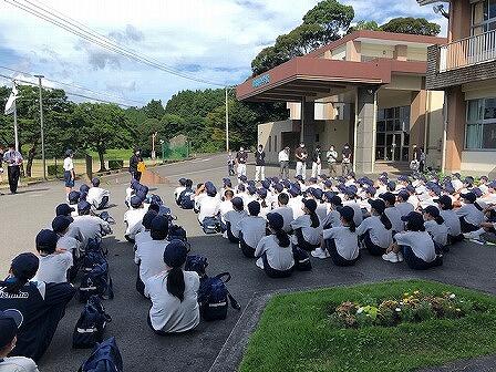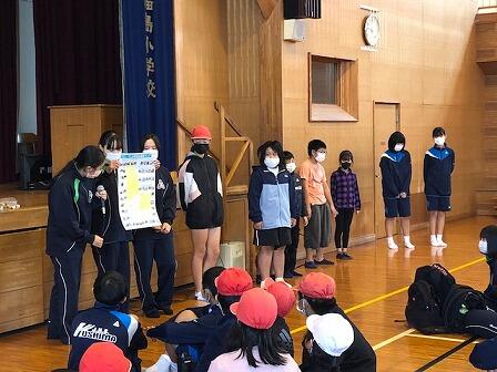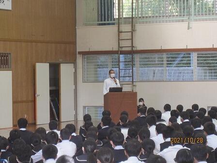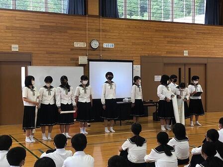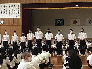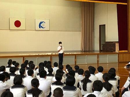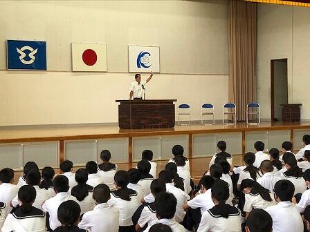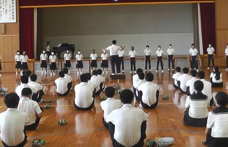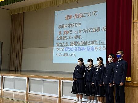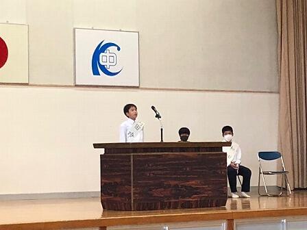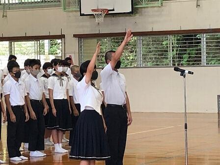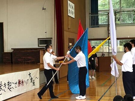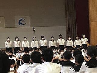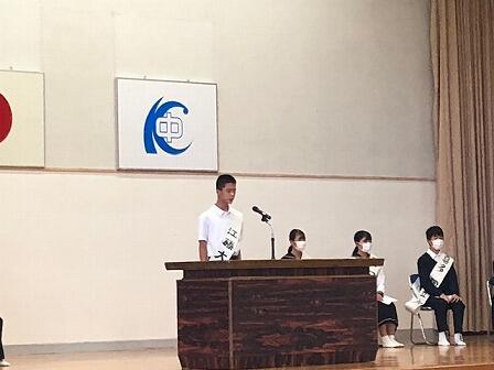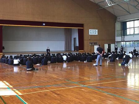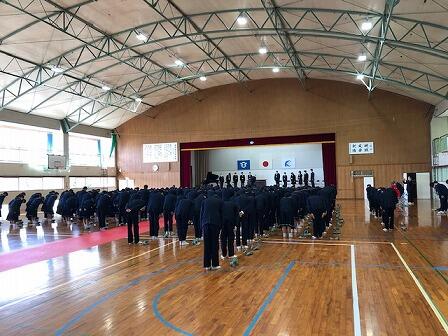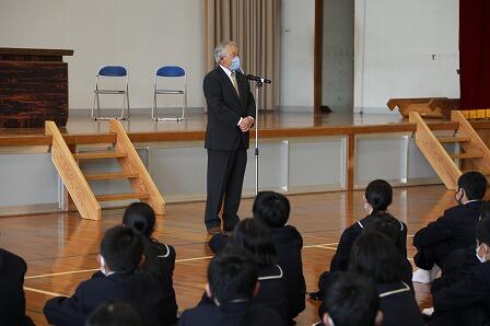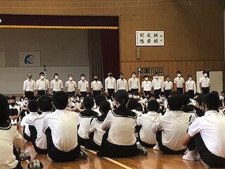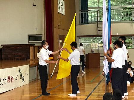地区大会に向けて部活動生の激励式を行いました。式では、バドミントン部主将が代表挨拶、野球部と女子バスケットボール部主将が力強い宣誓を行ってくれました。練習試合等もままならないなかでの大会になりますが、串間市の代表として、各競技での健闘を祈ります。