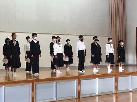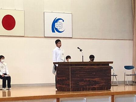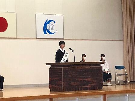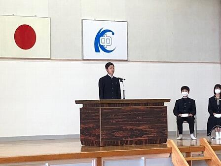 新入生誓いの言葉では、代表の生徒が、「中学生になる決意」と「感謝」を堂々と述べてくれました。