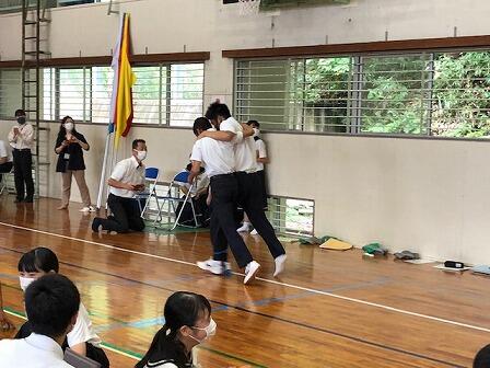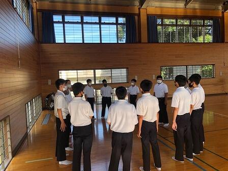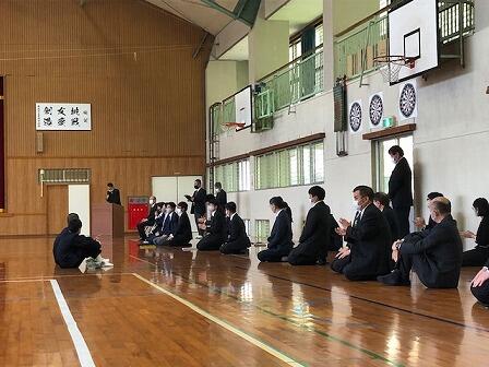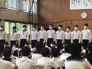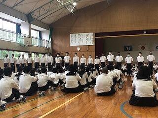 地区大会にて県大会の出場権利を得た選手たちの激励式を行いました。柔道部と弓道部主将が力強く宣誓をしました。各部の健闘を祈ります。