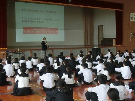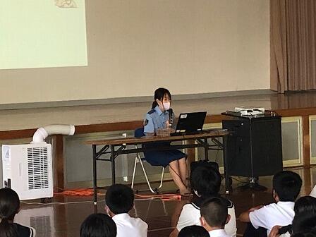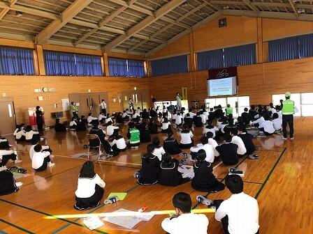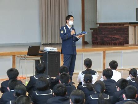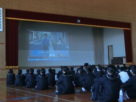 22日の交通安全教室の様子です。警察署の方に自転車の運転、歩行者の通行について映像をもとに、わかりやすく説明していただきました。交通安全に関する意識を高めることができたよい機会となりました。