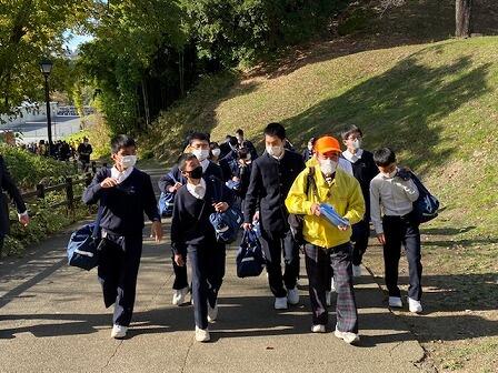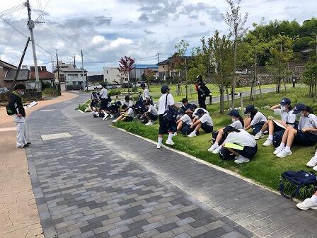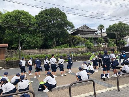 くしま学防災ウォークラリーを小・中・高連携で実施しました。各小学校区や地区の公民館をスタートして、地域の危険な個所を調査してまわりました。今年度の調査結果は、来年度の防災マップに掲載されます。