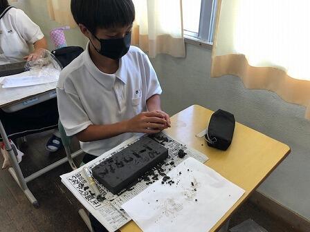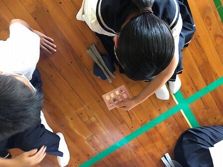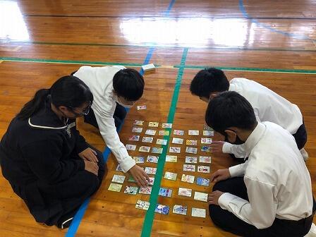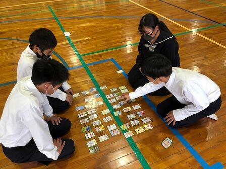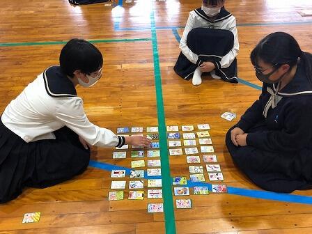 19日、くしま学カルタ大会校内予選会を行いました。クラスを7~8グループに分け対戦を行い、勝ち抜いた8名が代表として、市の大会に出場します。絵札に描かれたイラストの作者の兄弟姉妹も在籍しており、真剣に、楽しく札をとりあっていました。