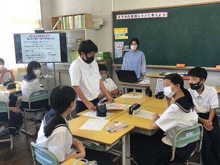 情報端末の普及にともない、絶えることないネットトラブルを未然に防ぐ目的で、「ネットいじめ防止教室」を開催しました。弁護士の牟田先生を講師に迎え、事例を示されながら、被害者、加害者にならないためにはどうしたらよいか考えていきました。GWやステイホームで情報端末を手にする時間が増えることが予想されます。教室で学んだことを意識しながら、使用しましょう。