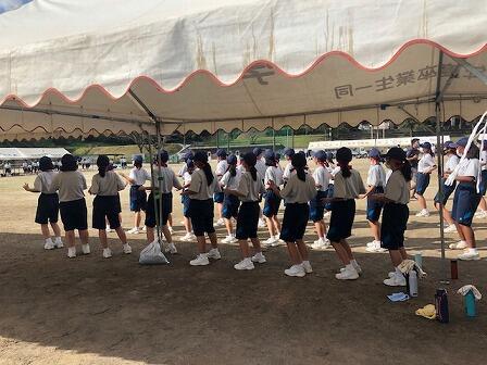 第5回体育大会を10日行いました。天候が心配されましたが、一時小雨が降る程度で、プログラムを予定通り終えることができました。