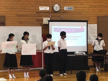 各学級の代表全4グループがスライドや模造紙を用いて発表しました。