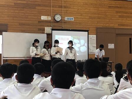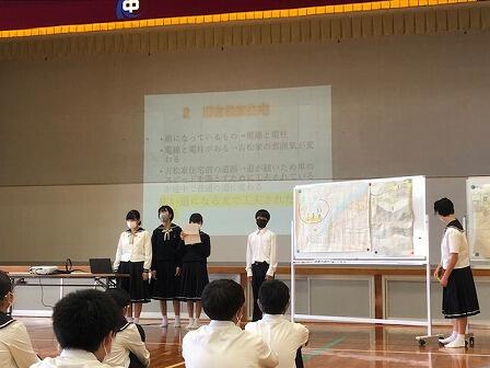 1学年で取り組んでいる「くしま学・景観学習」の発表リハーサルの様子です。